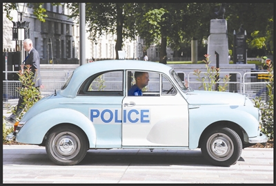 2017年7月13日,英国伦敦,一辆警车停在伦敦警察局总部门外。 (东方IC 供图)