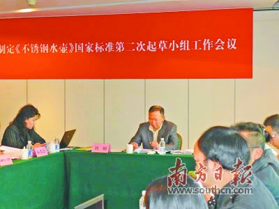 完成了前期要做大量的试验以及资料准备以外,还要经历数次专家组的工作会议来商讨制订。2015年5月6日—7日,标准起草小组在禅都新兴县组织召开了制订不锈钢水壶国家标准第一次工作会议,会议明确了标准编制的基本原则与要求、计划进度、各参加单位及人员的工作分工等,全体代表就标准草稿进行了逐字、逐句的认真推敲讨论,对所有内容达成共识,从而最终确定了标准的征求意见稿。会议还对耐腐蚀性要求进行试验验证,通过大量样品试验分析数据,一致认为标准应增加耐腐蚀性要求,试验证明,该要求是BS EN 13750:2002欧盟标准所不具备的,也是该次标准的一个新的技术指标亮点。
