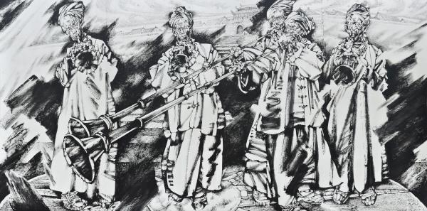 澎湃新闻记者了解到,“多彩贵州—大山的节日”主题美术创作活动于2017年初启动。贵州画院的艺术家们,对养育了自己的这方水土具有深厚的感情,他们以这些节日为灵感,通过对所选的节日主题进行深刻理解,结合自己的艺术表现,历时10个月,创作出了包括国画、油画、版画共70余件作品。