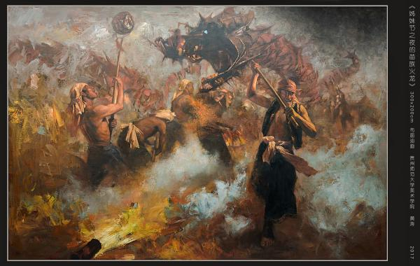 《姊妹节之夜的苗族火龙》,油画,黄涛