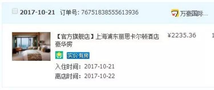 10月21日,李先生带着妻子,来到位于浦东陆家嘴国金中心的丽丝卡尔顿酒店。酒店是他们在网上官方旗舰店预先订好的,李先生支付了2235.26元。