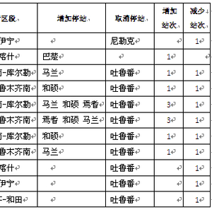 此次调图有21趟列车的停站发生相应变化,特别是对南疆部分客车增加了客运停站,更好便捷旅客乘车需求。具体情况详见附表。