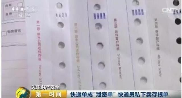 央视财经此前的报道就指出,目前市面上的快递单,一般一式四份,其中两份分别属于寄件人和收件人,而剩下的两份,一份留给快递公司作为底单,另一份则是派件员的存根。一些快递员离职时,就偷偷地把自己的存根出售给他人。