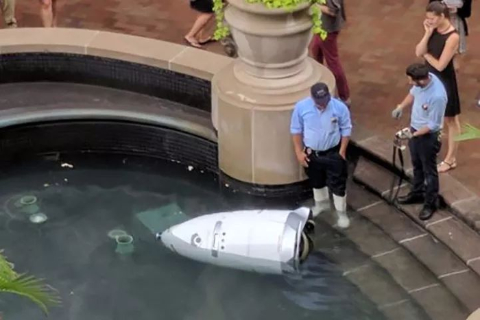 这名“自杀”的保安机器人是由硅谷公 Knightscope 研发的 K5 机器人,拥有 GPS、激光扫描和热感应等多项功能,并备有监控摄像机、感应器、气味探测器和热成像系统,自问世以来,在美国的大型商区中很受欢迎。