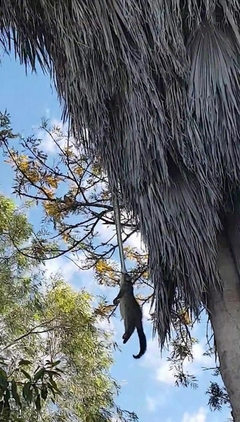 麦克马斯特表示,当时他正在家里修剪草坪,上方的树林里传来了声响,他这才发现有一条蟒蛇正缠绕在树上享用自己的美餐。这条蟒蛇缠在树上荡来荡去,花了整整30分钟才将那条巨大的负鼠完全吞食。视频显示,吞噬过程中,蟒蛇几次试图拽拉负鼠返回树上,无奈负鼠太重,差点从蟒蛇嘴里掉落。