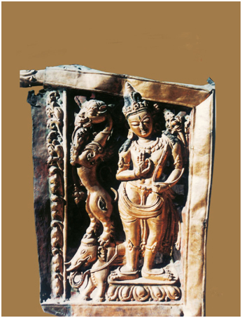 这两件残片均采用捶拓工艺成型,上面采用鎏金法,题材为佛教艺术中的“六拿具”,无论是从造型艺术,还是从制作工艺而论都堪称精品,残片上残留的人物和动物比例生动,形象饱满,构图考究而精细,没有对佛教艺术深刻的领会与长期的实践,是难以形成如此精雕细刻的作品的。