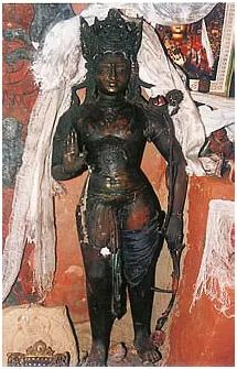 正是因为拥有丰富的金属矿藏,所以古格人精于冶炼。据说有一种被称为“古格银眼”的金属佛像,是他们作品中最精美的极品,因为极少流传于世,所以尤为珍奇,长期以来,无人知晓其究竟为何物,堪称古格宝藏。我第一次读到关于古格银眼的故事,是来自于著名作家马丽华的《西行阿里》一书。她在书中描述道,古格都城扎不让的北面有个叫“鲁巴”的地方,今天仍然是扎达县的一个乡。藏语中“鲁巴”意为“冶炼人”,传说古格王国时期,这个地方素以精于冶炼与制造金银器而闻名,当年阿里三围以托林寺为主寺的下属24座寺院的金属佛像与法器都由鲁巴铸造。据说鲁巴铸造的佛像用金银铜等不同的原料合金而成,工艺精湛,通体全无接缝如自然形成,其价值甚至超过了纯金佛像。而被称作“古格银眼”的铜像很可能就产自这个小村中。但她也说,鲁巴特别有名的“古格银眼”,“若不下功夫探询,就无法弄清是一种什么名堂”。