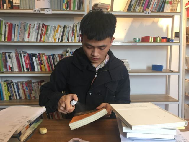 坐落在北京北五环边的一座民宅中的多抓鱼,空间局促,但每一项工序井井有条,有人审核订单,有人按订单在书架之间寻书,还有人为图书清洁、消毒。