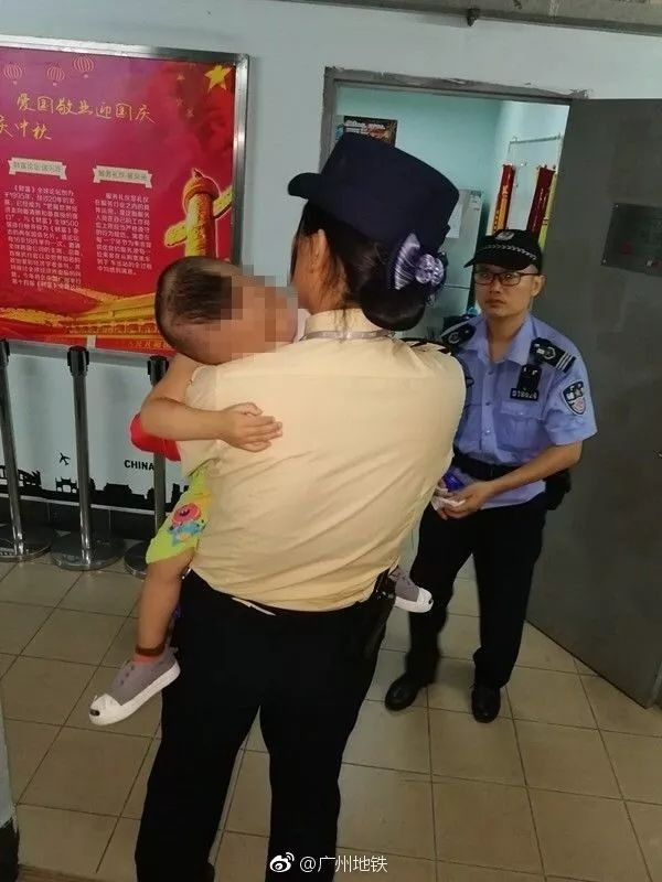地铁员工怀疑小孩和家人走散,便把孩子抱到设备区细心照顾,并帮其寻回亲人。