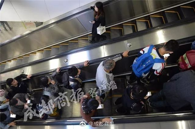 据统计,地铁磕伤事件在电扶梯上发生率最高,而倚靠扶梯、低头看手机最易出安全状况。预计明年3月成都所有地铁线路上的电扶梯都将会播报“不要看手机”。