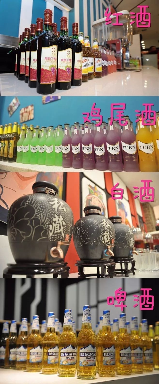 白酒,啤酒、红酒、鸡尾酒