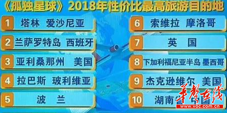 华声在线10月27日讯(记者 赖泳源 刘玉锋)2018年还没到,最佳旅行地榜单就已经新鲜出炉了。知名旅游指南出版机构《孤独星球》公布了他们评选的“2018最佳旅行地”推荐榜单,其中,湖南入选最物有所值的旅行目的地。