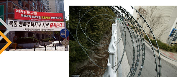 在韩国,公共住房和商品住房之间也产生了居住隔离的问题,拥有房产的居民不想和公共住房的居民共用服务设施,会在不同片区之间竖起围墙和铁丝网。甚至,不希望自己的孩子和公共住房的孩子一起上学。这种空间的隔离,最终会导致社会阶层的隔离。