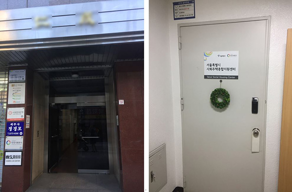 首尔社会住房中心位于一幢普通的办公楼内(左图),与韩国社会投资共用一个办公室(右图)。图片来自冯婧