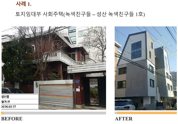 土地租赁式社会住房,改造前和改造后。图片来自Seoul Social Housing