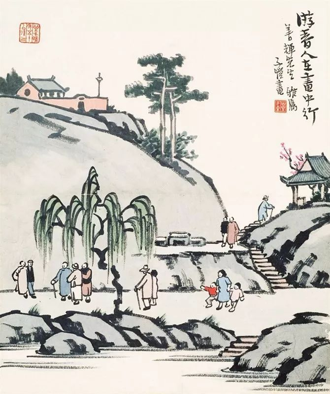 他的画处处映着青山绿水、春日斜阳、民国课堂、童稚嬉戏,民国质朴的风土人情,家国情深……
