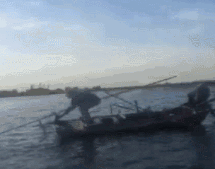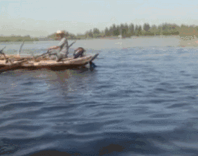陈小白再用竹篙将鱼鹰挑上船