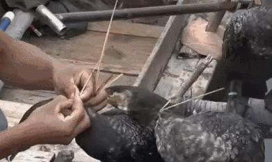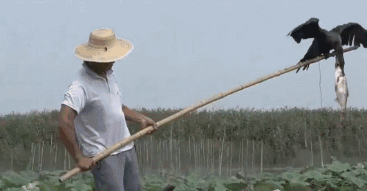 再用竹篙将鱼鹰赶下水