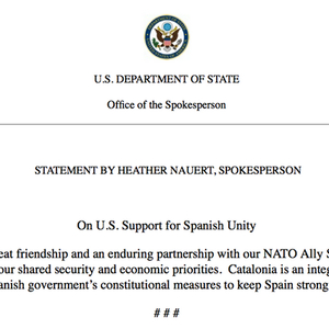 美国国务院:加泰罗尼亚是西班牙不可分割的一部分