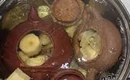 将甘蔗头放入壶身,然后放入冷水里,慢慢煮沸,直至厨房内充满甘蔗香味15-20分钟。将煮好壶捞出来,自然冷晾至室内温度。