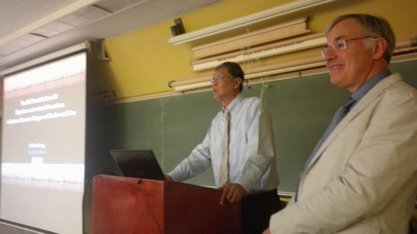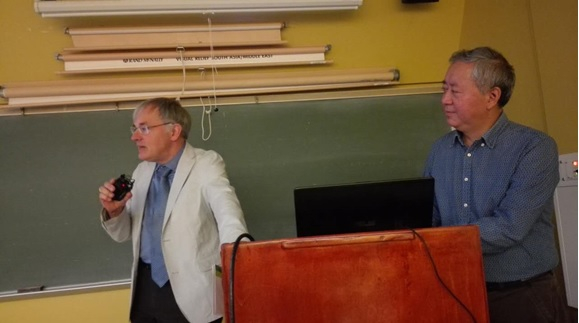 李水城教授作关于早期欧亚大陆文化交流的演讲,罗泰教授翻译