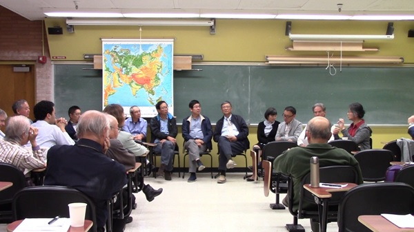 圆桌讨论:李旻教授(右一)就部分辩论结果向听众做英文解释