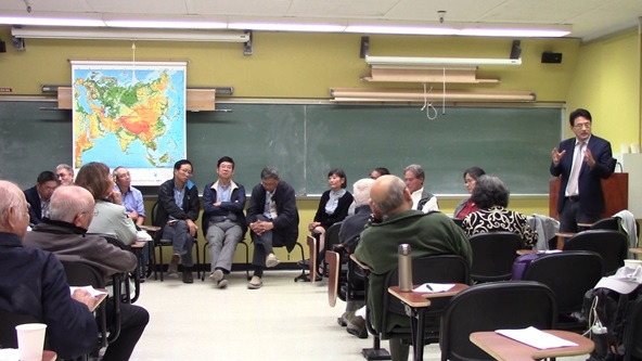 张弛教授作关于早期中国社会的演讲,罗泰教授翻译