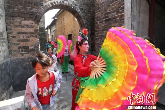 演艺团队走村串巷表演。 通讯员 陈卫平 摄