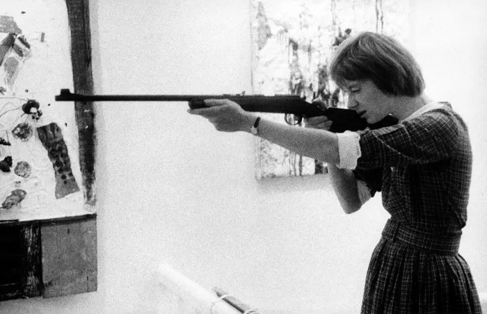 最终,妮基与丈夫分道扬镳,而她的艺术之路也走向了一个极端:枪击绘画。