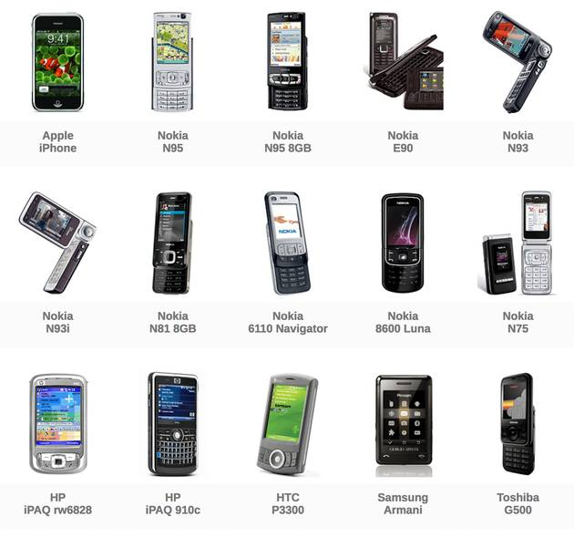 ▲iPhone 初代与它同期的对手们(Gsmarena网站)