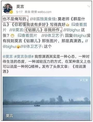 显而易见,上面那位博主发的话并非出自莫言本人。