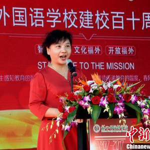 福州外国语学校校长王洪泠出席该校建校110周年校庆大会并致辞。 记者刘可耕 摄