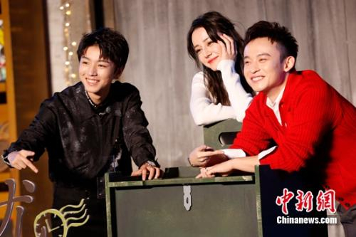 从左至右:王俊凯、迪丽热巴、董子健。 中新社记者李慧思 摄