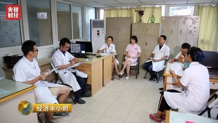 查完房后,医生吴小春组织了包含护士、护工、营养师、在内的7人小组讨论会。这个小团队两周来一直全权负责欧阳际清老人的康复治疗。通过近期的不断回访,他们根据老人目前的知觉恢复和体能锻炼,会继续制定出新的治疗评估方案。