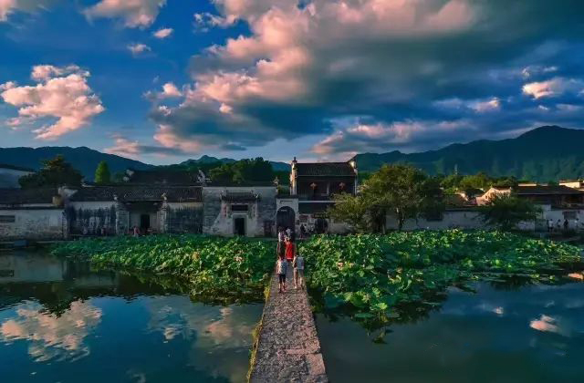 富有江南优美风景的宏村,鳞次栉比的层楼叠院与旖旎的湖光山色交相辉映,处处是景,步步入画。