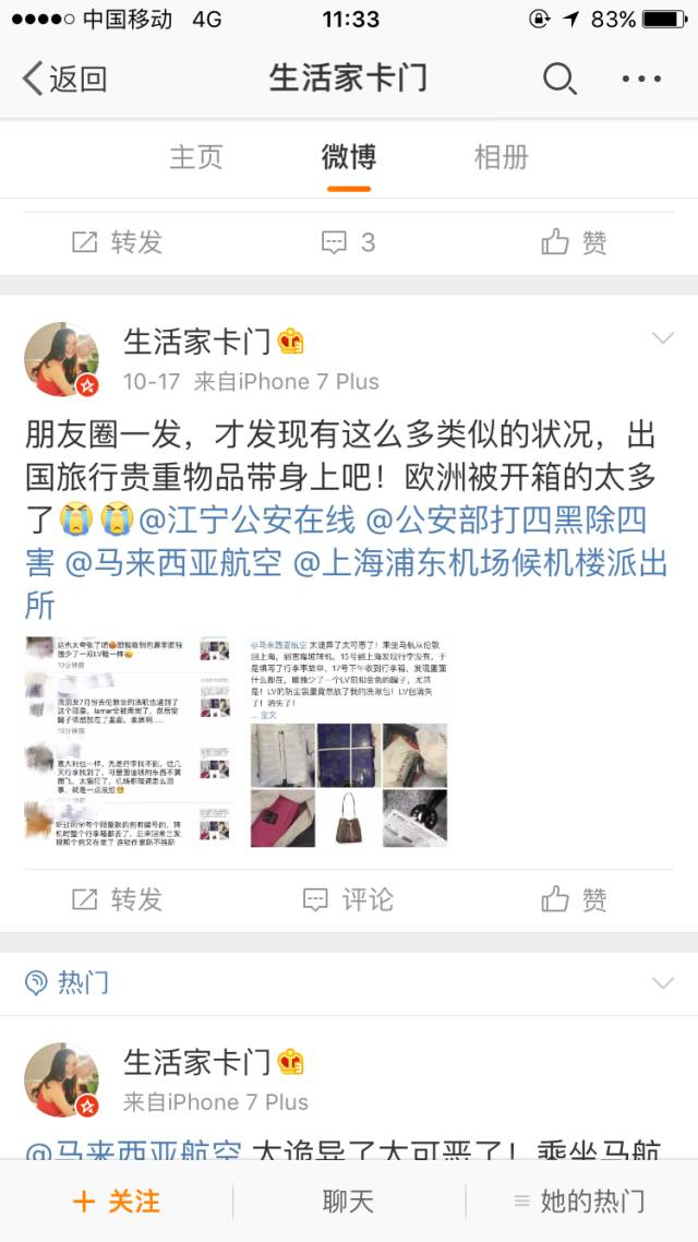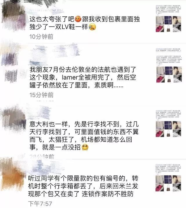 气不过的李小姐又在个人的微信和微博上发布了此事,一经发出,便引来众多网友评论,有好几个人都表示,自己也曾遭遇托运行李被开箱的事,大部分都无处维权,最终不了了之。