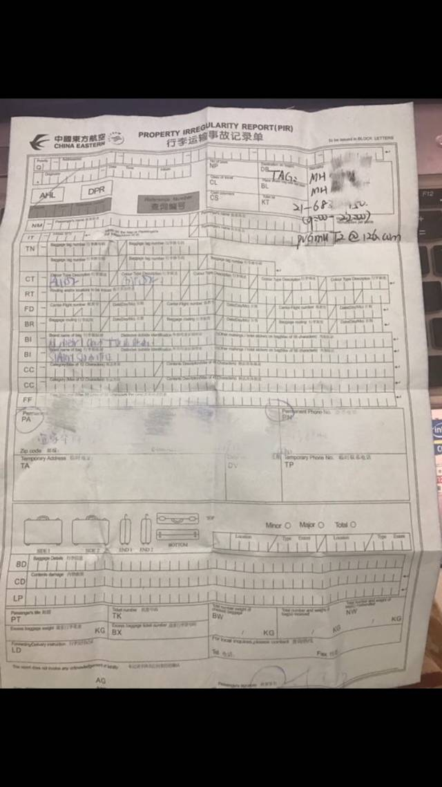 经过一番询问后,李小姐得知自己的行李未能同时到达,和她有相同情况的乘客不在少数,于是她们按照流程,填写了行李运输事故记录单,同时把宁波的家庭地址和个人联系方式等做了登记,以便之后将行李送达。