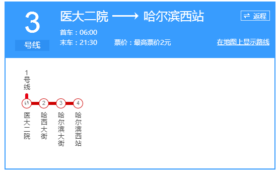 哈尔滨地铁3号线设计起点位于道里区城乡路西侧,向东南沿齿轮路敷设,沿经城乡路、哈尔滨西客站、医大二院、进乡街、哈轴集团、会展中心、红旗大街、太平桥、靖宇公园、景阳街、北马路、友谊路、兆麟公园、上海街路口、哈药路、前进路、河松街路口、康安路等街路。按照规划,哈尔滨地铁3号线项目总长度37.538公里,全部为地下线。3号线是环形设计,线路绕主城区敷设,全线共设32座地下车站。其中医大二院站、征仪路等9座车站是与运营中的1号线及其他规划线路的换乘站。