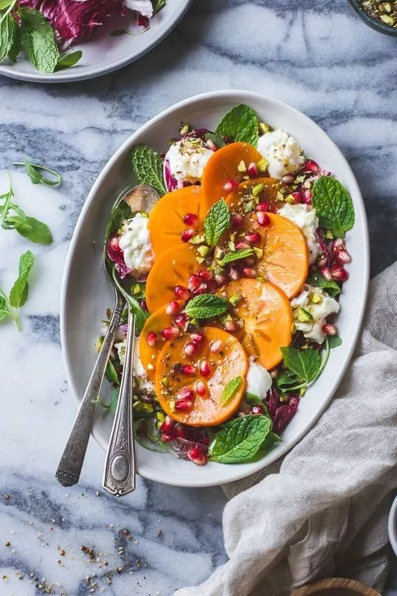 秋冬胃口大开,大鱼大肉吃多了,不如吃些好消化的沙拉给肠胃减减压。柿子沙拉营养丰富,还能润肠通便,好吃不怕胖!