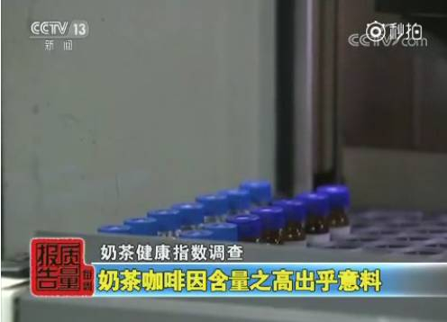 采访过程中,有消费者向记者反映喝完奶茶后会出现心悸、失眠的状况,记者通过搜索发现有类似情况的消费者着实不少,专家告诉记者,这可能与奶茶当中含有咖啡因有一定的关系。这次比较试验中,不但51件现制现售奶茶中全都检出了咖啡因,而且含量之高,甚至出乎了专家们的预料。