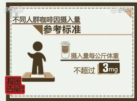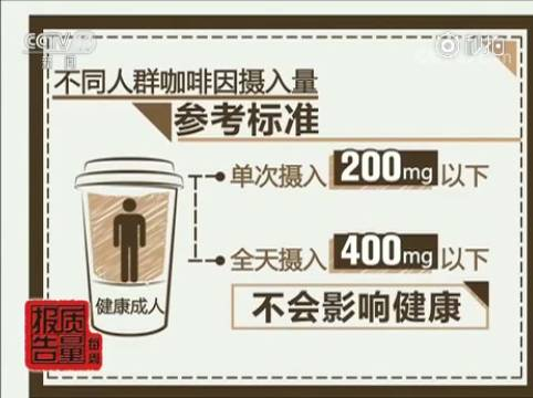 2015年欧洲食品安全局率先对食品中咖啡因的健康风险进行了评估并给出了不同人群的摄入量参考标准,这也是目前世界卫生组织认可的咖啡因摄入量标准,其中提出,健康成人单次摄入200mg以下、全天摄入400mg以下咖啡因不会影响健康;但是孕期女性对咖啡因摄入应注意,每天应不超过200mg;而咖啡因对儿童和青少年是否构成威胁,目前仍缺乏相关科学数据,摄入量每公斤体重最好不超过3毫克。