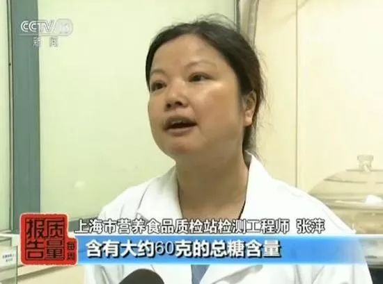 上海市营养食品质检站检测工程师张萍介绍,其中一号样品测出来的总糖含量是13.0g/100ml,以一杯奶茶470毫升来计算,相当于这一杯奶茶当中含有大约60克的总糖含量。