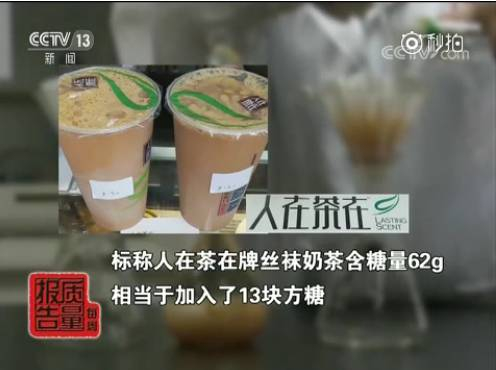 而最终经过检测结果发现27件标称正常加糖的奶茶平均下来,每杯奶茶样品的含糖量为33g,也就是说相当于平均加入了7块左右的方糖。其中,标称人在茶在牌丝袜奶茶单杯含糖量最高,达到了62g,相当于加入了13块方糖;其次是标称卡旺卡牌冰全套奶茶,单杯含糖量为52g,相当于加入了11块方糖;标称乐乐茶牌福冈抹茶,单杯含糖量为51g,也相当于加入了11块方糖。
