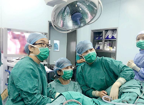 孙静率领的专家团队正为一名患者实施NOTES手术。上海市第一妇婴保健院供图