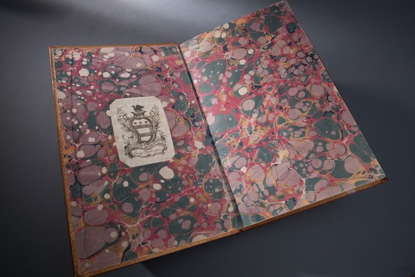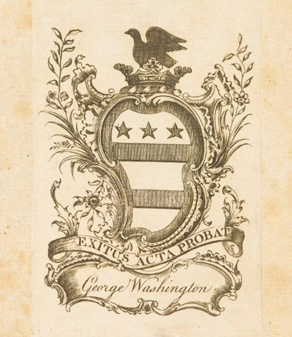 美国第一任总统乔治·华盛顿因在独立战争及开国建制中的卓越功勋获得了世人的尊崇,被誉为“美国国父”,2006年底著名刊物《大西洋月刊》(The Atlantic Monthly)编辑部曾邀请十位著名历史学家投票选出一百位美国历史上最具影响力的人物,其位列第二。其实华盛顿除了是一名政治家之外,还是一位爱书之人,尽管他的藏书规模不及另几位开国元勋:杰斐逊、亚当斯、富兰克林那样丰富,依然是一位不折不扣的“嗜书瘾君子”。和当时许多爱书之人一样,华盛顿也订制了自用藏书票贴于书中,而在所有名人藏书票中,此票因其票主显赫的身份、存世量稀少,历来是藏家的心头之好,又因收藏价值较高,坊间的赝品颇多,而关于书票的真伪问题,则更是长期以来广大书票爱好者关注的焦点,可谓众说纷纭、扑朔迷离。 1937年美国国会图书馆曾委托政府出版局(U.S. Government Publishing Office)发行过一套《乔治·华盛顿书信手稿选集:从1745年到1799年》(The Writings of George Washington from the Original Manuscript Sources 1745-1799),书中附有一枚华盛顿藏书票复制品,因通过影印复制而非原拓,清晰度不高,位于票面图案上方的渡鸦羽翼纹路已不可辨认。尽管如此,此书为研究华盛顿藏书票仍提供了重要参考资料。书中收录了一封1771年11月22日华盛顿写给友人罗伯特·亚当(Robert Adam)的信件,信中他罗列了一批物品,委托亚当回英国后帮忙采购,其中的一件便是藏书票,他写道:“倘使你去英国时能竭力帮我买到这些物品我将感激不尽……一款以我家族纹章为主题的雕刻版藏书票印版并拓印四百到五百枚……”(In case of your going to England I should be obliged to you for using your endeavours to purchase for me……a Plate with my Arms engravd & 4 or 500 Copies struck…)亚当收到信件后花了数月时间为华盛顿张罗这些物什,最终不辱使命,找到一位伦敦的工匠斯蒂芬•瓦里斯克尔(Stephen Valliscure)替华盛顿制作了这枚藏书票,该票采用铜版雕刻技法,是一款典型的奇彭代尔式纹章藏书票,这是一种盛行于路易十五统治时期并遍及欧洲的艺术风格,又称洛可可式(Rococo),其特点是具有纤细,轻巧,精致细腻的装饰性,多采用C形,S形或旋窝形的曲线图案和轻淡柔和的色彩,传到英国后被著名设计师托马斯·奇彭代尔(Thomas Chippendale, 1718 -1779)应用于作品中,故英国藏书票收藏家称之为奇彭代尔式。根据华盛顿信中的要求,亚当花十四先令买下藏书票的原始印版,并花六先令拓印了三百张。在1772年3月28日亚当寄给华盛顿的信件中,有如下记载: 罗伯特•亚当在马莎•罗林斯公司购物邮件列表(Sundries purchased & sent by Mr Robert Adam in the Martha Rawlins &ca) S. Valliscure(S. 瓦里斯克尔) Engravg Arms on a Plate(在印版上雕刻纹章) 14.0(先令) To Striking 300 Prints(拓印300枚藏书票) 6.0(先令) …… 据曾任哈佛大学校长与美国国务卿一职的爱德华·埃弗里特(Edward Everett)所撰写的《华盛顿传》(Life of Washington)一书中记载,华盛顿去世时其藏书经统计共有八百八十四册(不含未经装订的小册子及地图),根据他的遗嘱,所有藏书均留给侄子布什罗德(Bushrod Washington,1762-1829,他是开国元勋、《独立宣言》与《美国宪法》签署人之一詹姆斯·威尔逊[James Wilson]的学生,曾任美国最高法院大法官)。1829年布什罗德去世后藏书分别由他的两个侄子乔治(George C. Washington)与约翰(John A. Washington II)继承,需要注意的一点是,这批书籍中已混杂了布什罗德自己的藏书。 1834年乔治由于经营失措将华盛顿的手稿以及与军事相关的藏书出售给国会图书馆,约在1847年前后,他因手头拮据又打算让渡部分藏书(四百五十五册),政府机构可优先购买,然而他发现政府对此毫无兴趣,于是将这批书籍出售给一名叫做亨利·史蒂文斯(Henry Stevens)的古书商,史蒂文斯同时也是大英博物馆在美国的善本征集代理人,交易完成后不久,这名书商便宣称将把这批藏书转售给大英博物馆,消息传开后,由于国会图书馆对此事的消极态度,招致大片抗议声,更引起了波士顿一批有识之士的密切关注,他们旋即发起募捐活动,筹集到五千美元与史蒂文斯谈判,对方一开始索价七千五百美元,经过多番磋商买方最终以三千八百美元购得这批藏书并捐赠给美国著名独立图书馆—波士顿阅览室(Boston Athenaeum),因这个价格与最初的报价落差太大,史蒂文斯扣下了五本华盛顿藏书,其中两本出售给藏书家詹姆斯·伦诺克斯(James Lenox),剩余三本则卖给了英国的三家博物馆,但现有资料无法证明史蒂文斯售予詹姆斯•伦诺克斯两本华盛顿藏书的真实性,而英国三家博物馆的三本则有据可考。经波士顿阅览室清点鉴定,受赠的这批书籍中有三百五十四册是华盛顿本人的藏书。 布什罗德另一位侄子约翰所继承的华盛顿藏书则一直存放于国父乔治·华盛顿的故居—弗农山庄(Mount Vernon)中,山庄位于美国弗吉尼亚州北部的费尔法克斯县,华盛顿从二十二岁直到1799年逝世,都居住在此山庄,他将自己的藏书存放于书房及餐厅的一个精美书柜中。1858年山庄被华盛顿家族转让给弗农山庄妇女会(Mount Vernon Ladies' Association,是美国第一个国家历史文物保护组织)后,这批藏书被转移保管,直至1876年由当时的继承人劳伦斯(Lawrence Washington)交由Messrs Thomas & Sons.拍卖行拍卖,其中二百八十二册是华盛顿的藏书,最终宾州著名藏书家约翰·雷米吉乌斯·贝克(John Remigius Baker)成为此次拍卖的大赢家,十