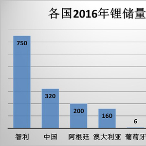 澎湃新闻(www.thepaper.cn)翻阅美国地质调查局(USGS)的2017年发布的统计数据发现,全球锂资源总量丰富,但分布不均,主要分布在南美洲、北美洲、亚洲、大洋洲以及非洲。2016年全球锂矿储量(Reserves)约为1447万吨,已查明资源量(Identified lithium resources)约为4700万吨,主要分布在智利、中国、阿根廷、澳大利亚、玻利维亚等国。其中,智利是锂储量最大的国家,中国排名第二,锂储量分别为750万吨、320万吨。2016年全球已查明资源量约为4700万吨,主要分布在智利、中国、阿根廷、澳大利亚、玻利维亚等国。