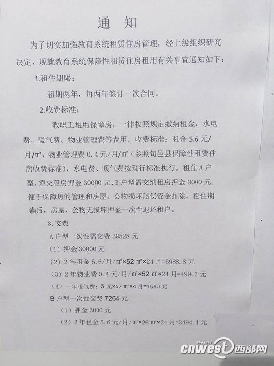 制定相关政策的“上级组织”究竟是谁?保障性住房收取高额押金是否符合规定?记者随后联系了旬邑县教育局。