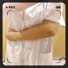然后,再用左手手掌从右肩膀开始,沿着胳膊的外侧三焦经的行走线路往下拍打,直到手腕。