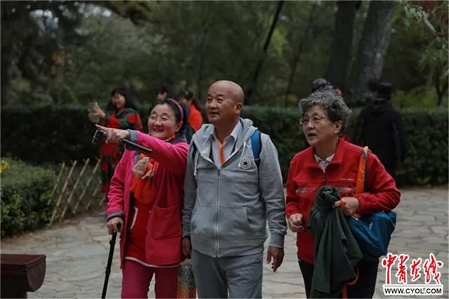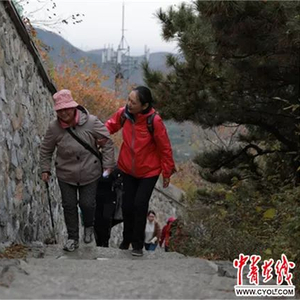 “我们每年也就来香山一两次,今天刚好是重阳节,带我爸妈过来登山。”家住通州的曹女士带着72岁的父亲和74岁的母亲来登香山,他们历时一个多小时,成功登上海拔575米的香炉峰。图为曹女士和父母登山去往香炉峰途中。中国青年报·中青在线记者 王亦/摄