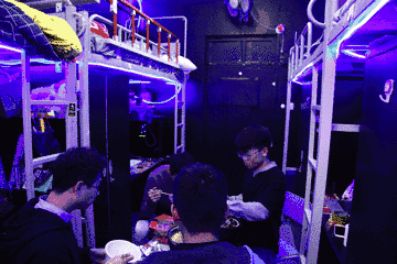 “我们的整体设计是一个太空舱。”邓亚东说,他打开27日晚上拍的照片,宿舍四个同学都坐在自己的座位上,房顶中央的白炽灯被关上,从床边和房顶四周延伸过去的LED灯带闪着蓝色的光,从门口看去,确实像是进了一个微型舱内。